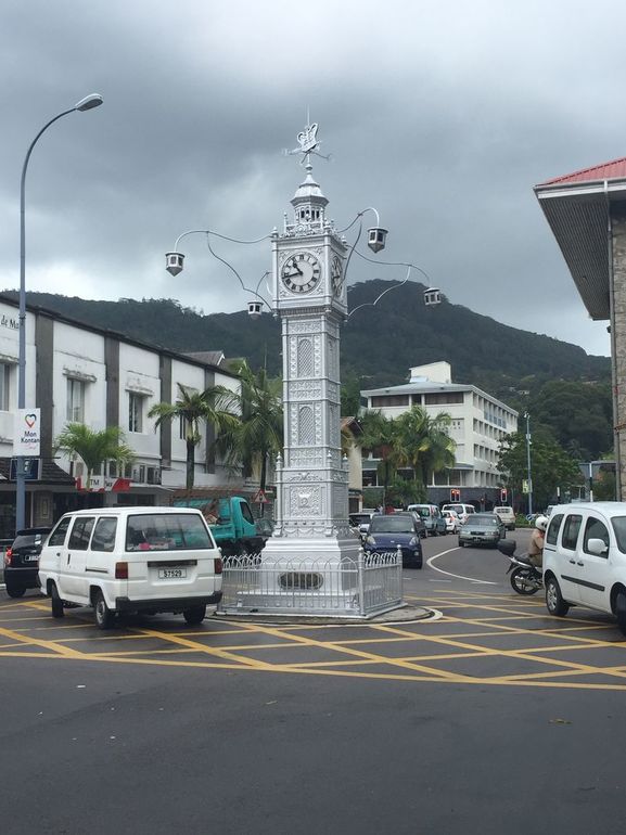 Маленькая копия английского Биг Бена, который поставили к приезду королевы Виктории на Сейшелы. Стоит посреди оживленного перекрестка, близко не подойти.