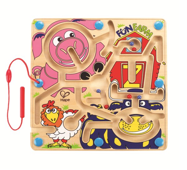 Игрушка деревянная "Ферма - лабиринт" код 1880459Игрушка деревянная "Ферма - лабиринт"Внутри лабиринта находятся металлические шарики, которые малыш будет передвигать при помощи специальной указки с магнитом. Пластиковая панель не позволит шарику вывалится и всегда оставаться в лабиринте. Указка прикреплена к панели шнурком, поэтому малыш никогда ее не потеряет. Игрушка разивает координацию, ловкость ручек, учит малыша понимать пространственные отношения и причинно-следственные связи. Кроме того лабиринт способствует развитию логических способностей.От 2 лет.Размер игрушки: 24.4х24.4х2 см