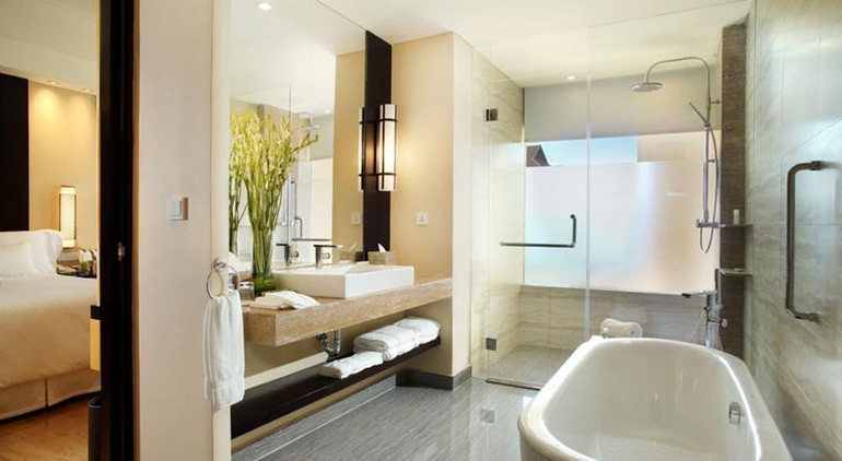 - One-bedroom Suites, Executive Suites 4 and Westin Suites 12 (площадь номера 76 кв.м., одна спальня с примыкающей ванной комнатой с раздельными ванной и душем, отделены межкомнатной дверью от обеденного зала со столом на 4 персоны, который переходит в удобную гостиную с диваном и журнальным столиком, дополнительная кровать не ставиться, номер с видом на бассейн или сад. Максимальное размещение 2 взрослых и 1 ребёнок)