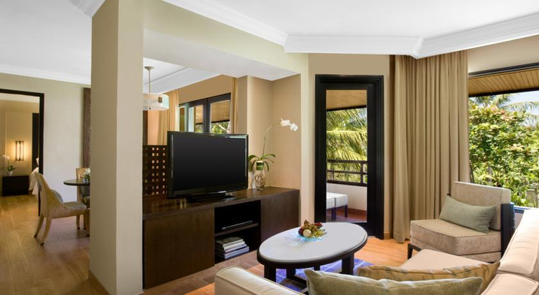 - Premium Room Garden View (площадь этих новых номеров (всего 96 номеров) 48 кв м, расположены в новом крыле отеля и отличаются по виду из номера на сад, лагуну и конференц-зал. Кровати в номере или одна большая (king size) или при размещении с детьми DBL DBL bed (две большие полутороспальные кровати, размер 2 х 1.37 м), можно поставить дополнительную кровать. Максимальное размещение 2 взрослых и 1 ребёнок или 3 взрослых)