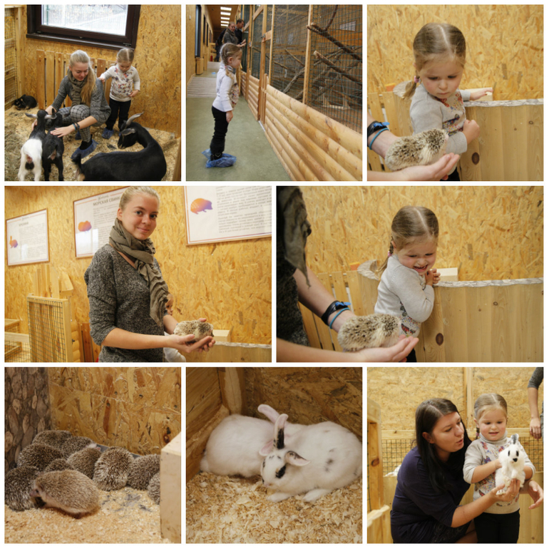 Сотрудник выходит, открывает двери в вольерчики, достает малышей. Тех, которых можно трогать- дает потрогать.