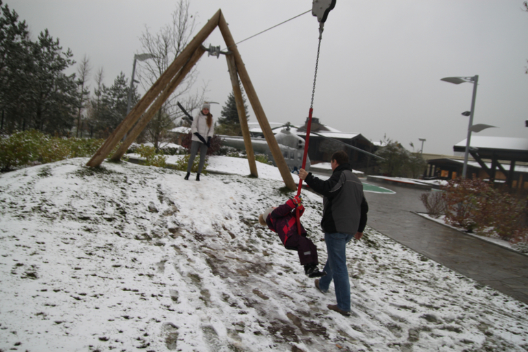 Можно спуститься, держась за канат. Пока включила фотоаппарат ребенок уже убежал)