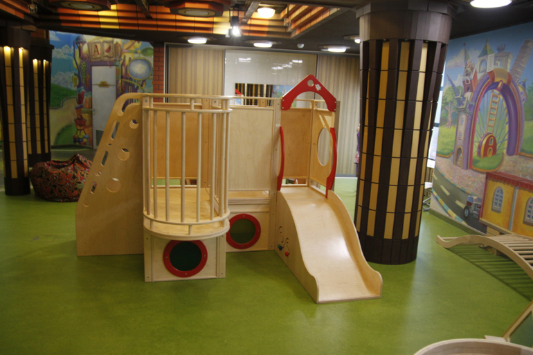 Есть классный лабиринт с прозрачной горкой, ребенок проползает в прозрачной трубе на высоте метров 3…
