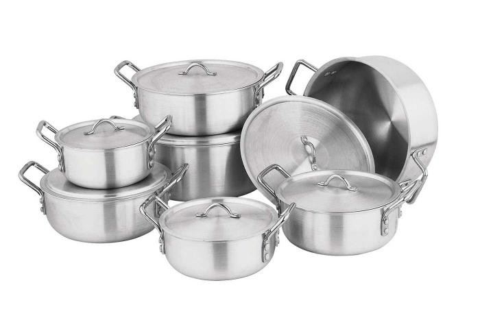 Это достаточно дешевый, легкий и долговечный материал. Алюминий хорошо проводит тепло, а значит, вода и пища в такой посуде быстро нагреваются. Это мягкий материал, поэтому посуда из него лучше толстостенная. В ней не пригорают молоко и каши, но после приготовления лучше все перелить в стеклянную или керамическую посуду.