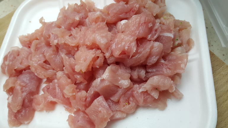 Порезала на кусочки филе индейки 600 гр. (думаю подойдет также куриное филе или кролик)
