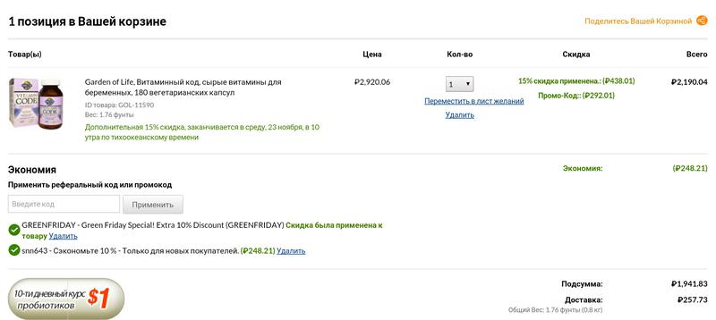 Получат 10% скидку на заказы от $40 при использовании промокода GREENFRIDAY. Или 15% скидку на избранные товары по уходу за кожей, спортивное питание и продукты из кокоса.
