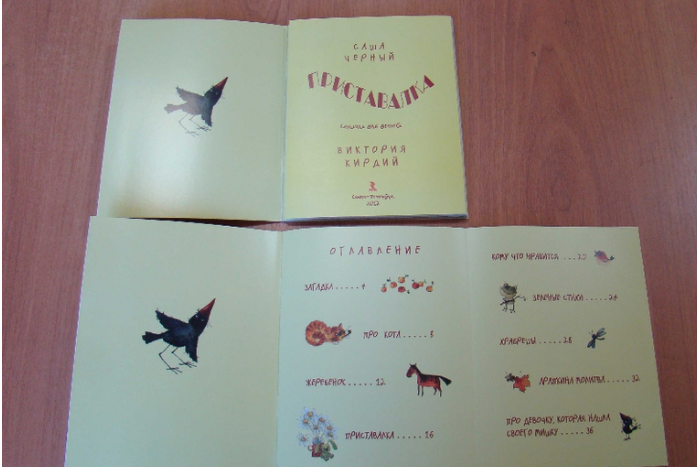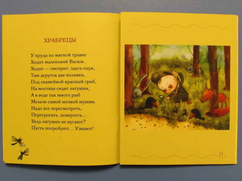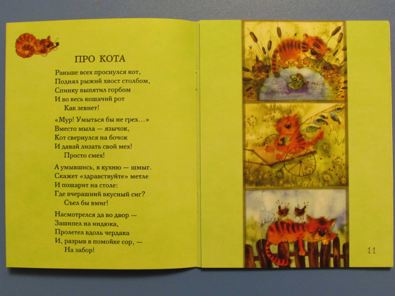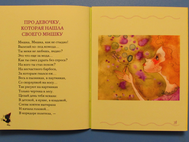 На каждом развороте книги по одному стихотворению.