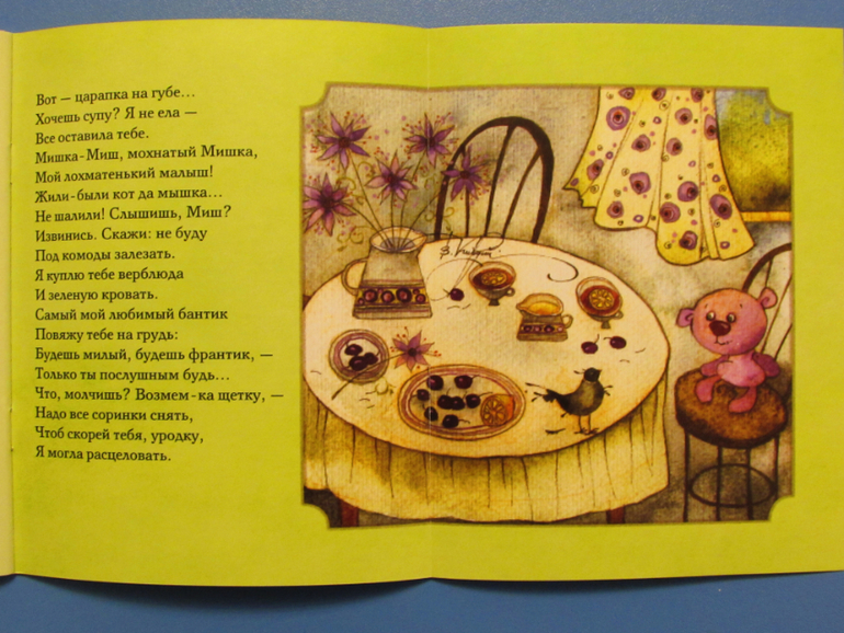 На каждом развороте книги по одному стихотворению.