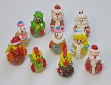 44. Фигурка новогодгодняя в пакетике (д.мороз, петушок, снеговик, снегурочка). 30-35г.