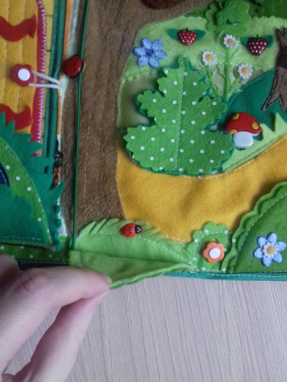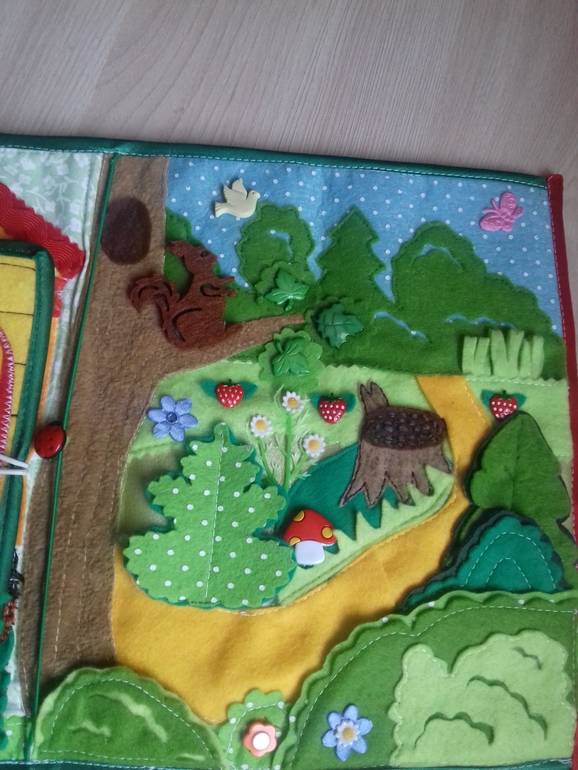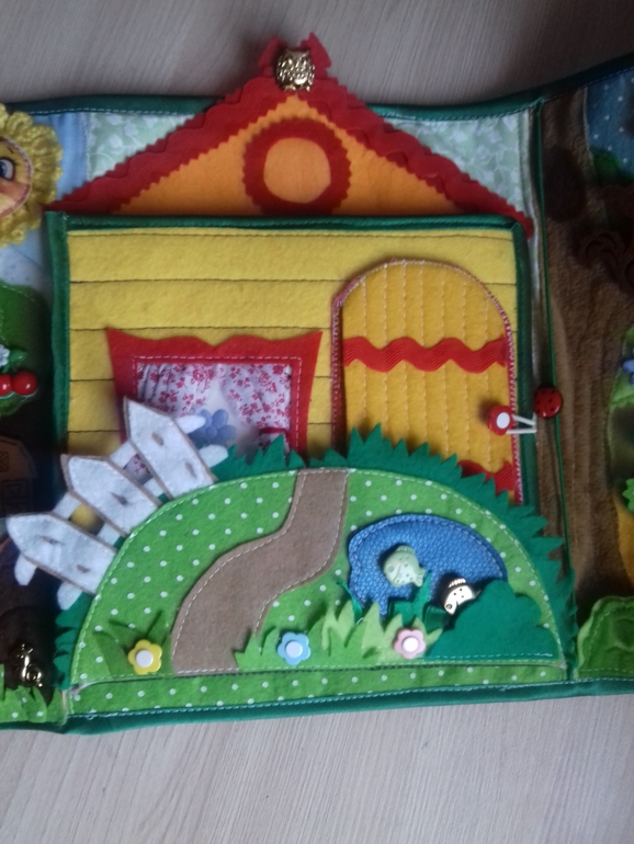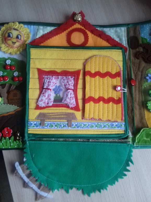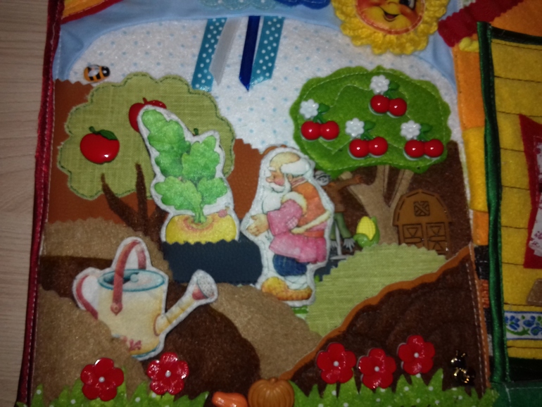 Книжечка состоит из сада с огородом, домика, который открывается и леса.