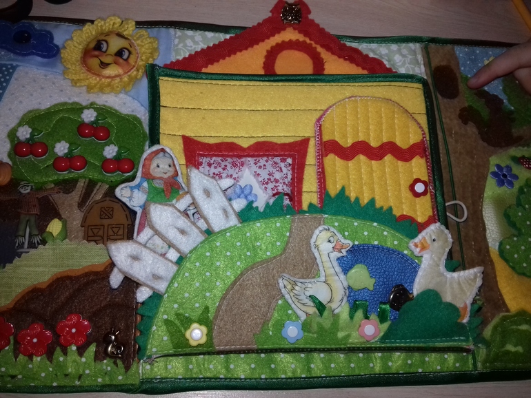Здравствуйте, девушки-рукодельницы! Хочу Вам показать свою первую книжку из фетра, которую я сшила для своей младшей дочки Милашки. Наша Миланка очень любит сказки, поэтому я решила сшить книжку для игры в её любимые сказки: колобок, репка, два весёлых гуся, теремок и курочка ряба.