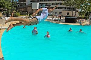 В пансионате имеется четыре открытых бассейна, оборудованных лежаками и теневыми навесами: взрослый с подогревом, подростковый, два детских бассейна, один из которых с подогревом и аква-горками!!!