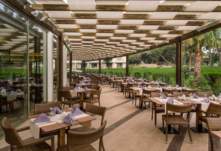 Рестораны, бары: - основной ресторан, закрытая секция рассчитана на800 человек; - открытый Snack Restaurant на250 человек; - 3 ресторана А`la Carte: итальянский, китайский и барбекю; - 5 баров: Lobby Bar, Pool Bar, Disco Bar, Cafe Turk, K-Bar.