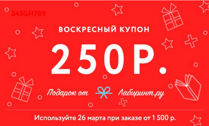 К каждому заказу, оформленному с понедельника по пятницу, мы дарим купон, который можно потратить в воскресенье, 26 марта, в заказе от 1500 р.