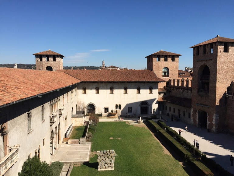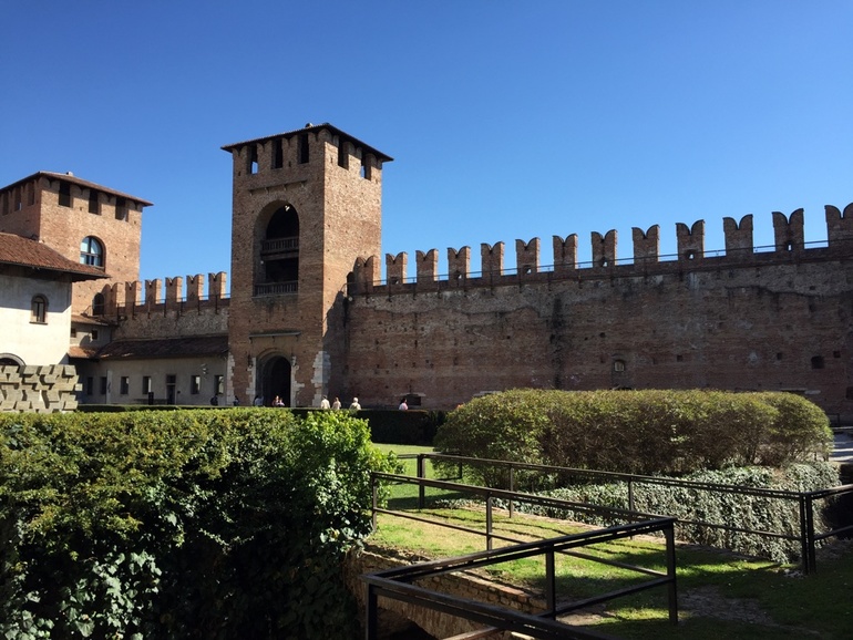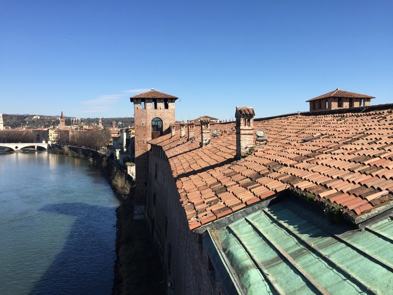 Зашли внутрь в музей (по Верона-кард), а после него поднялись на стены, окружающие Крепость.