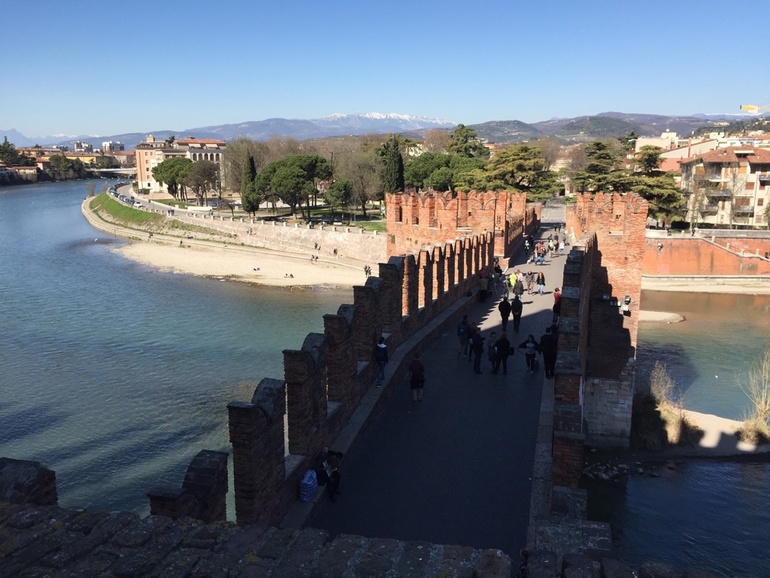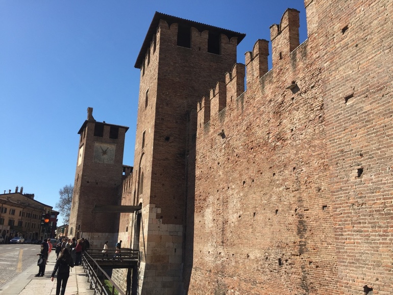 Дошли до замка Кастельвеккьо на берегу реки. Зубцы моста ничего не напоминают?)