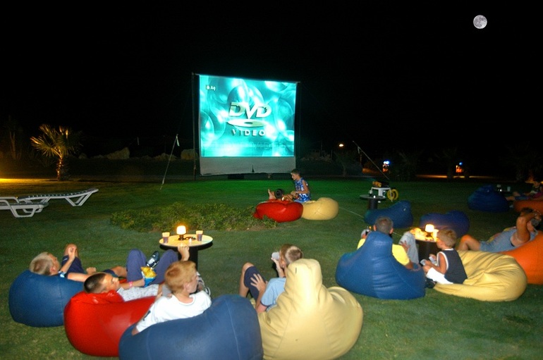 Так же можно отдыхать на лежаках на большой зеленой лужайке!