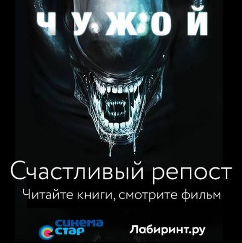 Сегодня в российский прокат выходит новая часть легендарной киновселенной — «Чужой. Завет». В честь этого события книжный интернет-магазин Лабиринт.ру совместно с сетью кинотеатров Синема Стар разыгрывает пять пригласительных на фильм в любой кинотеатр сети и пять книг из серии «Чужой против Хищника»