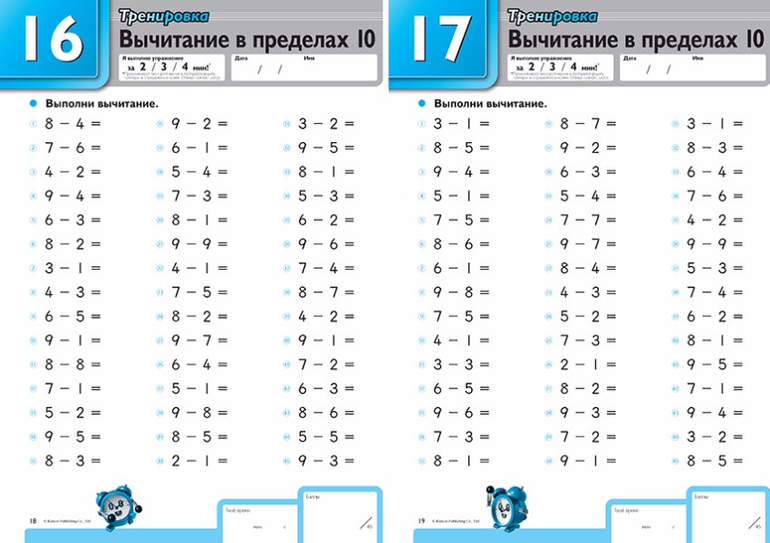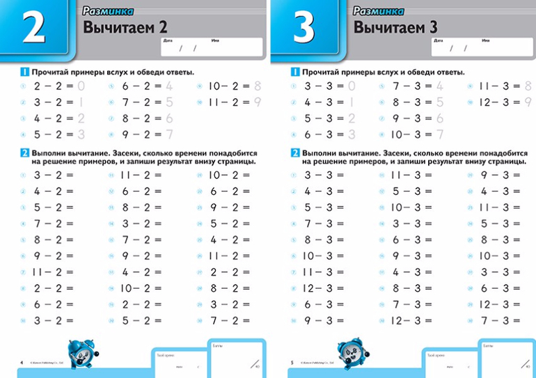 Этот сборник заданий является уровнем 1 в методике индивидуального обучения KUMON в разделе «Математика для школьников». В тетради ребёнку предстоить решать математические примеры на вычитание, отрабатывая правильность и скорость выполнения заданий. Занятия по тетради следует начинать только после того, как ребенок освоил правила вычитания.