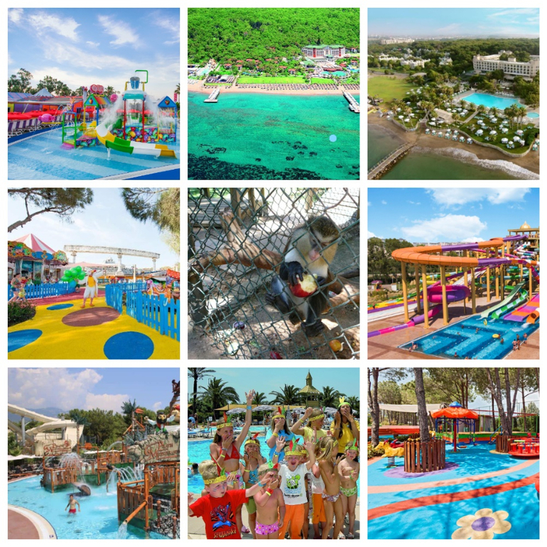 Во всех отелях для деток: детские клубы, анимация на русском языке, водные горки, питание все включено, бассейны, кроватки-стульчики, детское питание, водные горочки и детские площадки и многое другое. Есть отели с собственным аквапарком и лунапарком! Есть с собственным зоопарком. Выбор есть ) БОЛЬШОЙ!