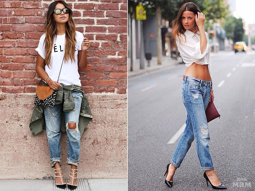 Любительницы экстремальных образов удачно сочетают даже рваные бойфренды и туфли с анималистическим принтом. Хотя модные критики считают расцветки зебры, леопарда или змеи слишком «тяжелыми» для теплого времени года, правильно подобранные бойфренды позволяют носить их даже летом.