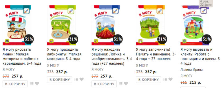 Первые пять тетрадей издательства "Я могу" у нас есть. Они рассчитаны на возраст 3-4 года.