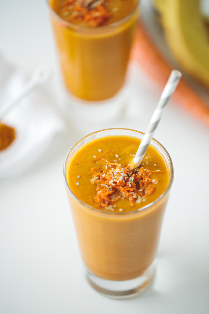 Это мощный, улучшающий зрение коктейль из желтой свёклы, моркови и куркумы. Он наполнен бета-каротином и огромным количеством питательных веществ. Минимальная необходимая доза каротина для взрослого человека 6.0 мг в день. Бета-каротин перерабатывается организмом в витамин A — жирорастворимый витамин, поэтому употреблять его нужно вместе с жиром.