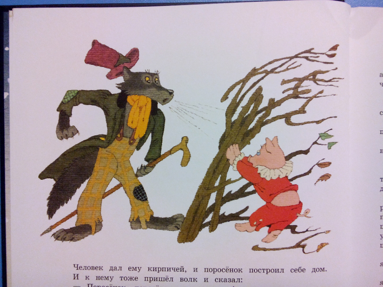 Есть всем известная сказка про английская «Сказка про Трех поросят» (она кстати опубликована в переводе Н. Шерешевской) и малоизвестная испанская сказка «Торо Ростом с гору».