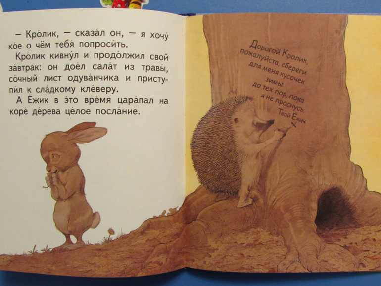 Перед тем как впасть в спячку, Ёжик попросил Кролика СБЕРЕЧЬ КУСОЧЕК ЗИМЫ. Ёжик ни разу не видел зимы, поэтому очень хотел узнать какая она.
