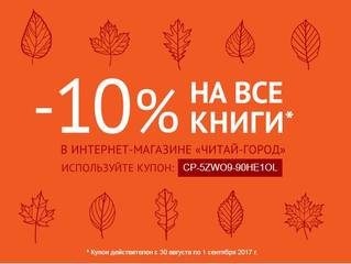 Отдам купон Читай-Город на скидку 10%. Купон одноразовый, кто первый взял, тому и скидка.