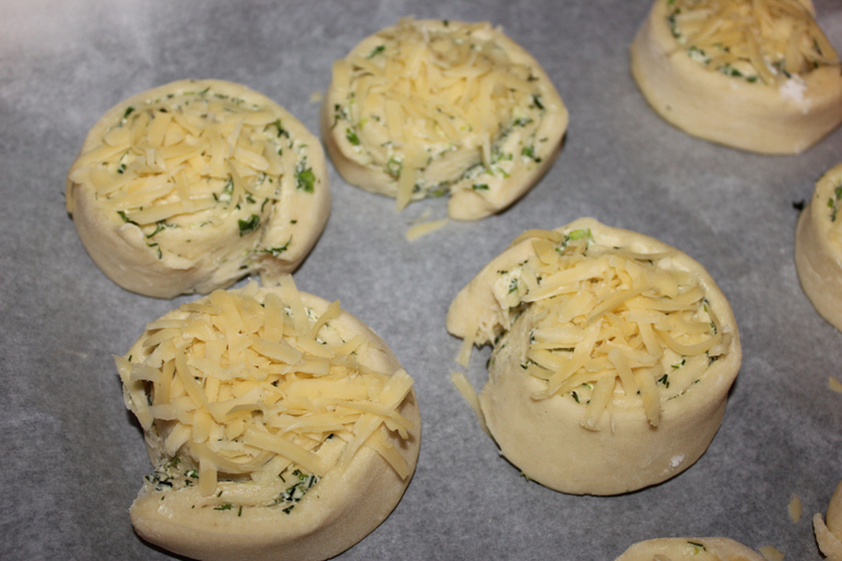 выложить завитушки на противень застеленный пергаментной бумагой на расстоянии друг от друга.Ставим в теплое место и ждем, пока рулетики подойдут.