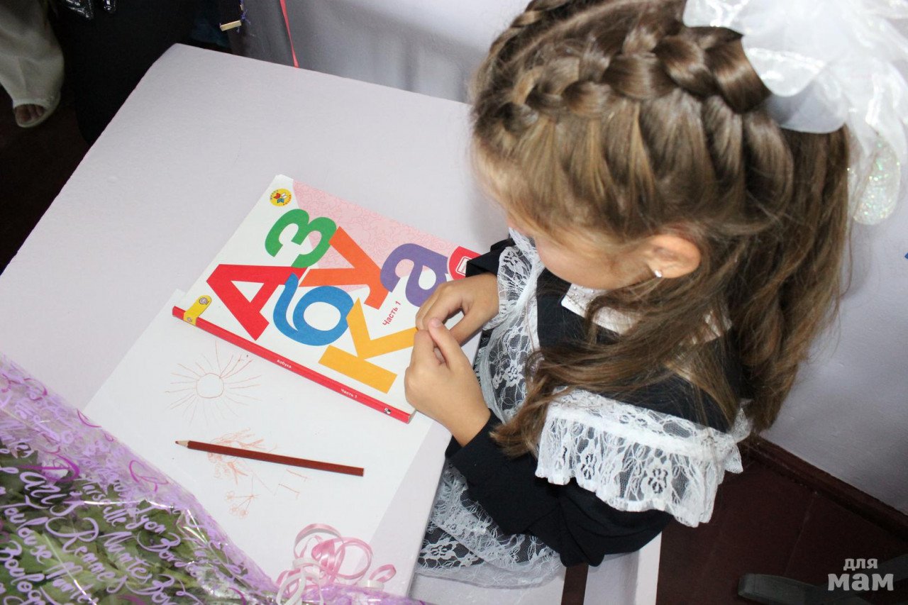 Про причёску на 1 сентября я совсем забыла.Вспомнила уже накануне вечером, полезла в интернет судорожно искать подходящие варианты. И поняла, что большинство из них мне не по силам, тем более с утра. С 2-мя хвостиками идти очень не хотелось и резинок подходящих не было, чтоб держали. В итоге: зажала дочку, взяла расчёску и принялась репетировать