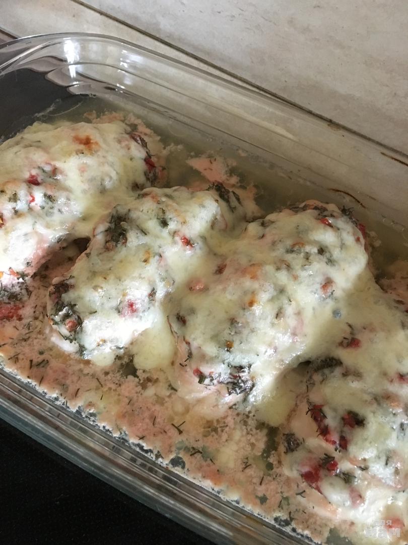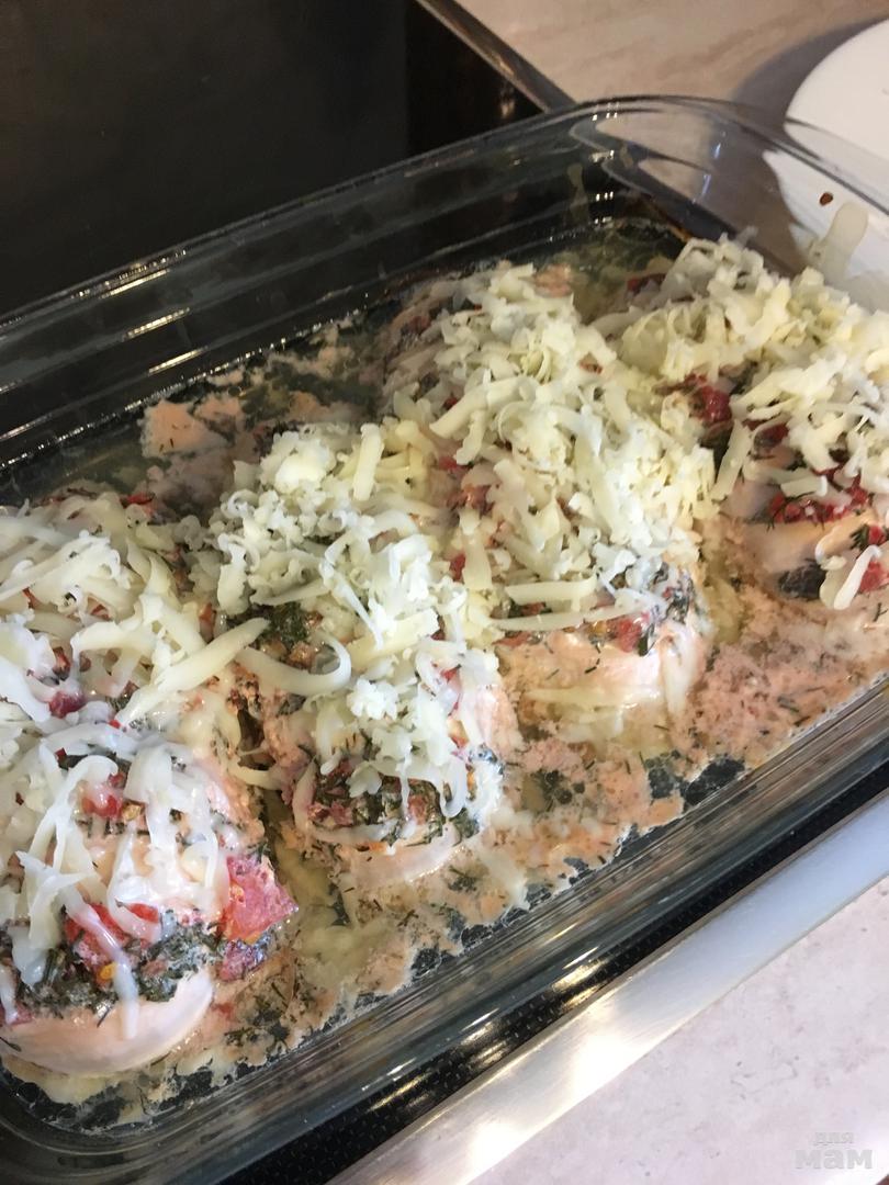 потом посыпаем тертым сыром и еще раз в духовку до готовности