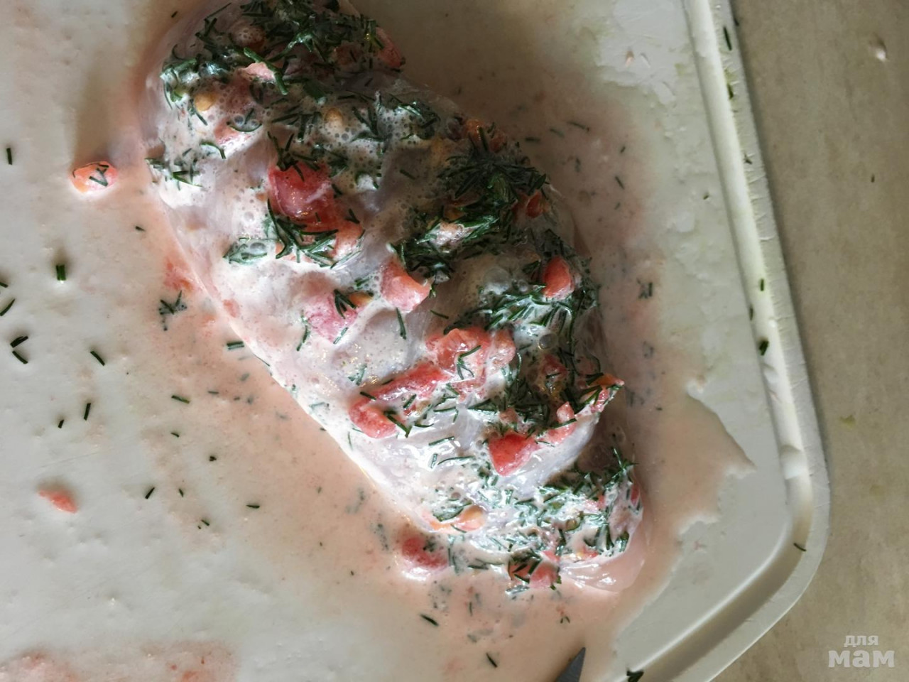 По рецепту в сети делается со шпинатом и маскарпоне, но я просто с зеленью и помидорами сделала. И тоже вполне съедобно получилось)