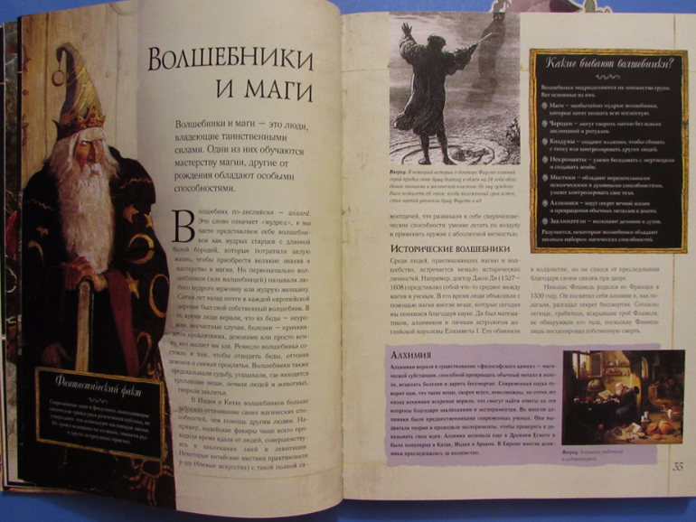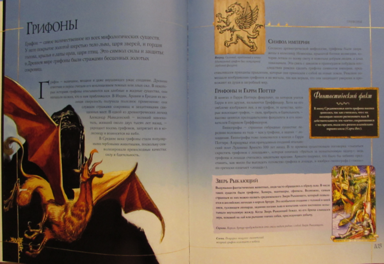 Каждому чудо - юду посвящен один разворот. На котором размещен кратенький рассказ о самом волшебном существе, фантастический факт, несколько иллюстраций или фотографий (с подробными подписям к ним).
