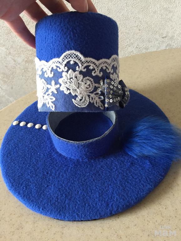 В перерывах между другими поделками, от нечего делать, мне пришла в голову идея смастерить коробочку-шляпу из фетра. Сделалась очень быстро и просто, сделать может каждый) Кусочки фетра были не очень большие и шляпу я решила делать маленькую.