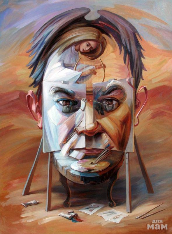 — Мир — разнообразный и интересный, он сложнее, глубже и содержательнее, чем кажется на первый взгляд. Своими «двоевзорами» я пытаюсь привлечь зрителя к творческому сотрудничеству с автором, дать возможность почувствовать радость открытия чего-то нового, изменить стереотипность мышления.