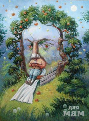 — Эти картины рассчитаны на то, чтобы осматривать их в выставочном зале. Тогда они воспринимаются по «правильной схеме»: сначала человек рассматривает сюжет, а уже потом, отойдя на определенное расстояние, — видит портрет. В интернете все происходит наоборот: зритель на маленькой превьюшке сначала видит портрет, а, уже увеличив его, рассматривает детали. Это лишает зрителя неожиданности, сюрприза. Это все равно, что читать книгу, начиная с последней страницы. Иногда встречаю отзывы вроде: «Никакого скрытого содержания в картинах нет — все видно сразу». Но тут ничего не поделаешь.
