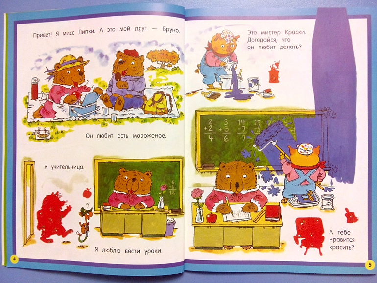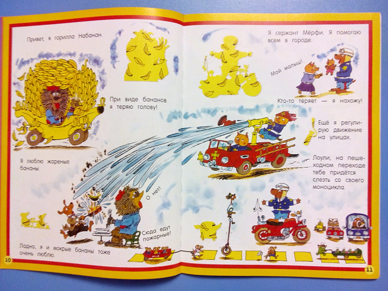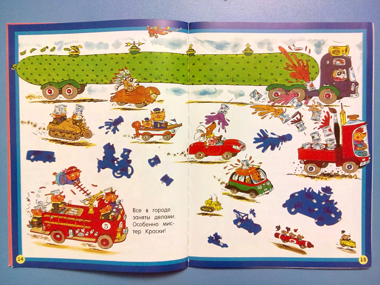 Книга прекрасно издана: рисунки очень яркие и выразительные. Автор рисунков также Ричард Скарри. Фотографии у меня немного получились бледнее, чем сама книга.