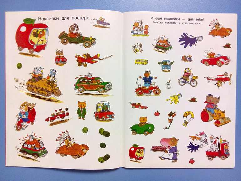 Книга могла бы стать обычным альбомом для наклеек, если бы ее автором не был Ричард Скарри, автор всем широко известных книг: «Город добрых дел», «Книжка про машинки» и др.