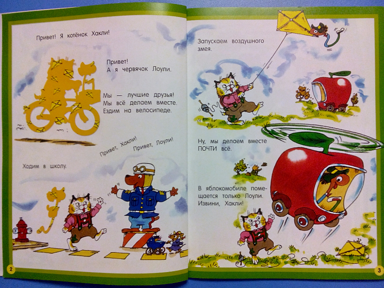 В книжке минимум текста и максимум картинок. Это хороший вариант для детей, которые не любят слушать текст, а любят рассматривать картинки.