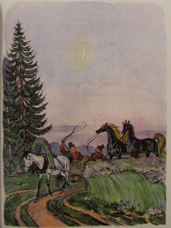 Приступая к иллюстрированию сказки Ершова, Владимир Милашевский подробно изучил одежду, утварь допетровской эпохи, а самое главное русские породы лошадей.