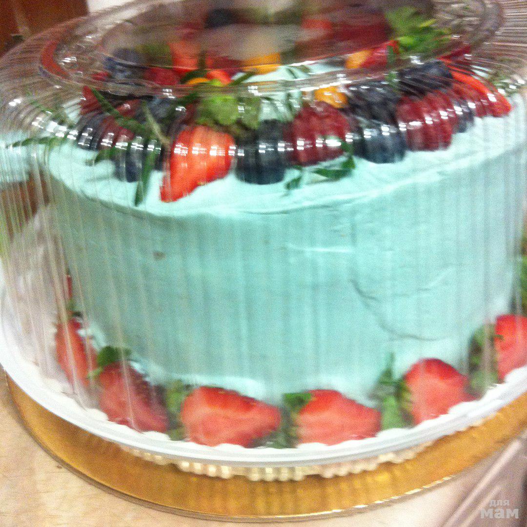 Шоколадный бисквит, крем-чиз и клубничное кули . Украшен свежими ягодами .Вес 4 кг.
