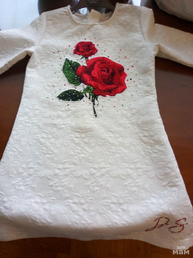 Осталось шубку. Платье белое, красивое имелось, но на груди большой красный цветок. Снегурочке совсем не подходит.