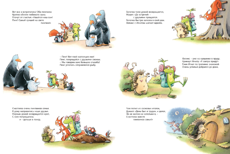 Однажды в дверь к ёжику постучался маленький, беззащитный пингвинёнок. Как он оказался в лесу и где его родители?.. Чтобы помочь пингвинёнку найти свою семью, малышу придется совершить увлекательное путешествие по запутанным лабиринтам, а заодно познакомиться с обитателями леса и зоопарка. В пути ему помогут красочные картинки и весёлые стихи. Книжка учит ориентироваться в пространстве, находить детали, концентрировать внимание.