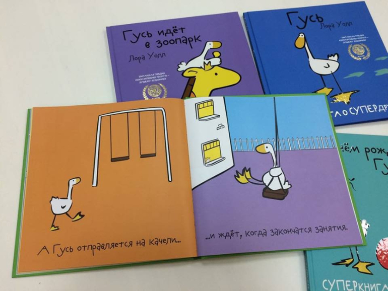 История Софии и Гуся начинается на детской площадке, куда пятилетняя девочка отправилась вместе с мамой. Софии было грустно и одиноко, так как рядом не было друга, с которым можно было бы вместе играть. Но вдруг появляется… Гусь! Герои быстро становятся друзьями и теперь им некогда скучать. Вместе они играют, катаются с горки и качаются на качелях.