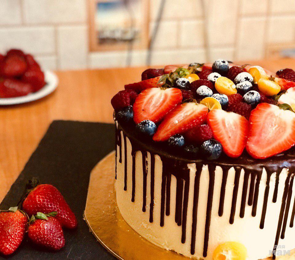 Медовые коржи ,сметанный крем ,чернослив и грецкий орех . Вес 3 кг.
