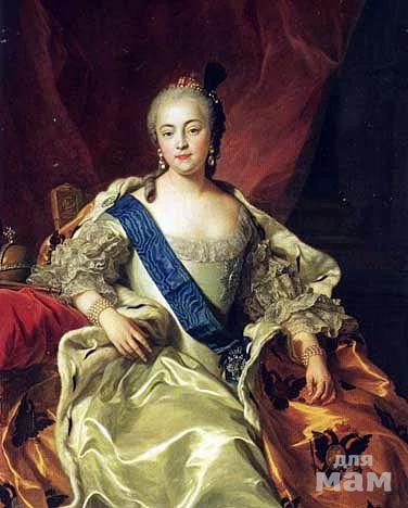 Портрет императрицы Елизаветы Петровны кисти Виргилиуса Эриксена, 1757 годЕлизавета была внебрачной дочерью Петра. Её мать Екатерина происходила, вероятнее всего, из простых крестьян, была захвачена русскими войсками в Швеции в качестве "военного трофея" и на момент рождения Елизаветы являлась лишь одной из любовниц русского царя.