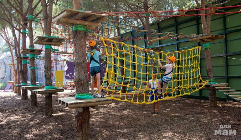 На отдельной игровой площадке находятся игровые домики, горки и качели, в то время как огромный парк приключений, подходящий как для детей, так и для подростков располагает местом для игры в баскетбол.