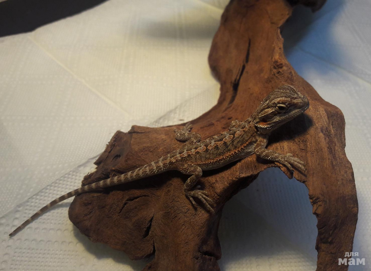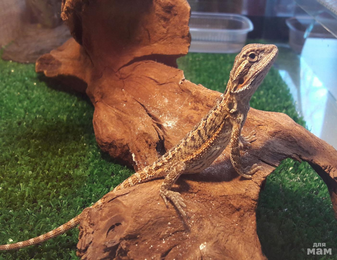 Тут нашей "бородатой агаме" приблизительно 1,5 месяца, только только привезли, осваивает новый дом